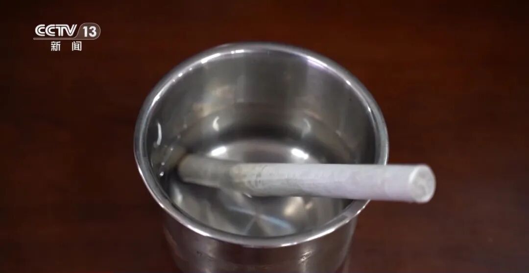 居民在艾灸时,一个常见误区是没有发现明火或烟雾,就以为熄灭了。而这正是艾灸类产品最大的安全隐患,它的燃烧缓慢且持续,易发生阴燃。接下来,消防员模拟居民将点燃的艾炷沾水的熄灭方法,几分钟后,消防员将其取出。