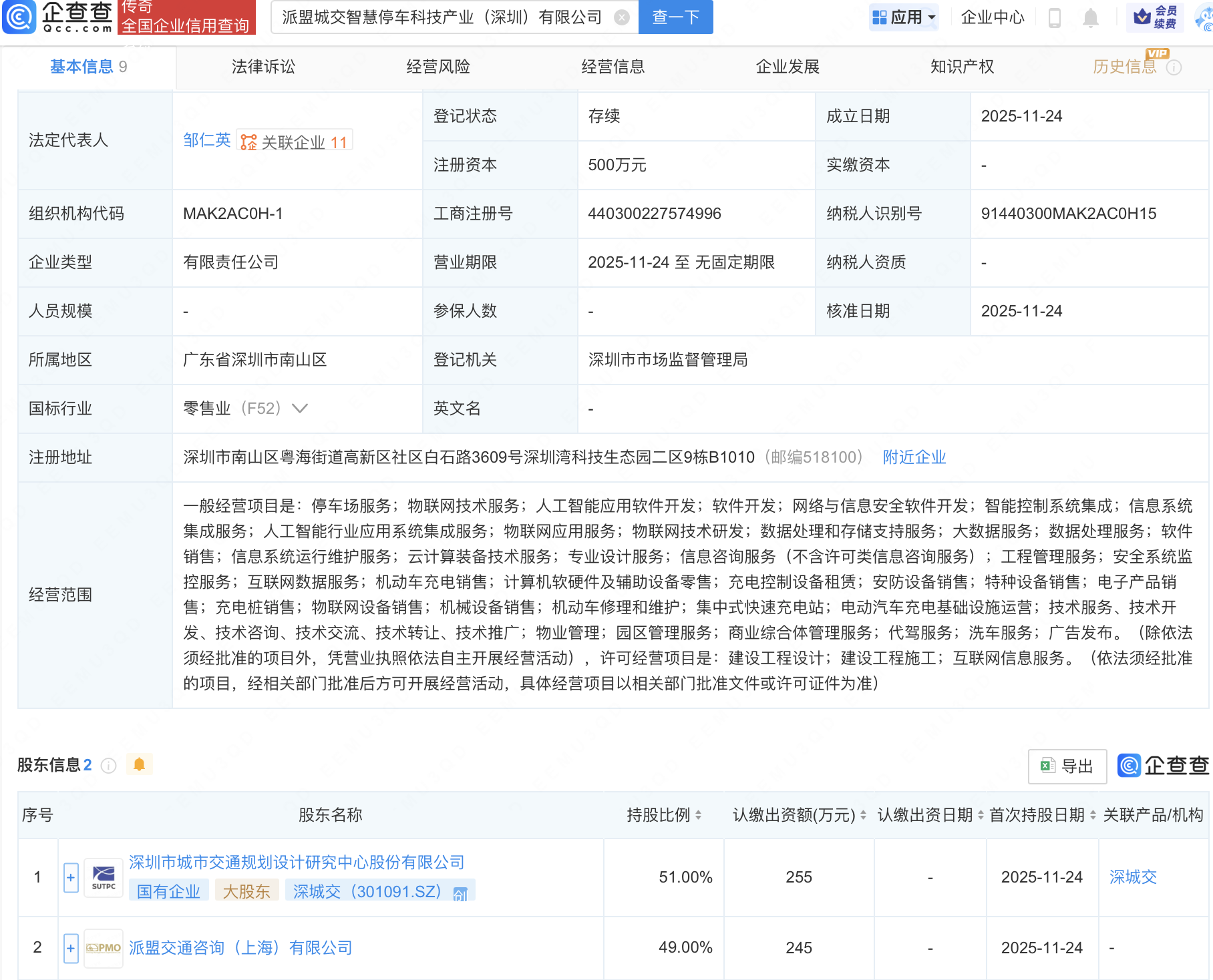 配资头条官网 深城交等成立智慧停车科技产业公司,含AI业务 配资头条官网 来源:元鼎证券开户 网站:元鼎证券_元鼎证券手机版_十大证券配资平台 查看:130 日期:2025-11-26 18:17:21